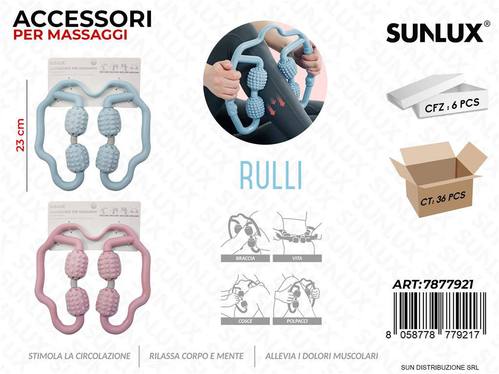 Scopri Sunlux Accessorio per Massaggi, l'alleato tascabile per rilassare muscoli e articolazioni in qualsiasi momento. Compatto e leggero, è ideale a casa, in ufficio o in viaggio. Le superfici ergonomiche facilitano l'auto-massaggio mirato, aiutando a sciogliere tensioni e migliorare il benessere quotidiano. Realizzato con materiali resistenti e piacevoli al tatto, garantisce una presa stabile e confortevole. Disponibile in colori assortiti, aggiunge un tocco di stile alla tua routine di relax.