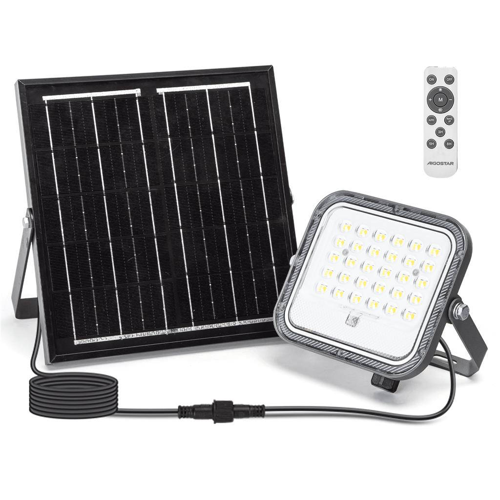Illumina spazi esterni con Aigostar Flood Light Solare 2m 50W CCT serie 09, il proiettore LED alimentato a energia solare progettato per prestazioni affidabili e risparmio energetico. Grazie al pannello solare ad alta efficienza e alla batteria integrata a lunga durata, offre luce potente senza cablaggi. La tecnologia CCT selezionabile permette di scegliere la temperatura colore ideale per ogni scenario. Con grado di protezione IP65, resiste a pioggia e polvere. Installazione semplice con cavo da 2 metri e staffa orientabile per un posizionamento ottimale.