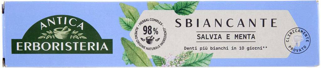 Scegli ANTICA ERB. DENT. 75ML SBIANCANTE C0009 per un rituale di igiene orale efficace e naturale. La sua azione equilibrata aiuta a valorizzare il bianco dei denti con costanza e delicatezza. Ottimo per chi cerca un dentifricio sbiancante affidabile da integrare nella routine. Regalati un sorriso più luminoso e una sensazione di freschezza duratura ogni giorno.