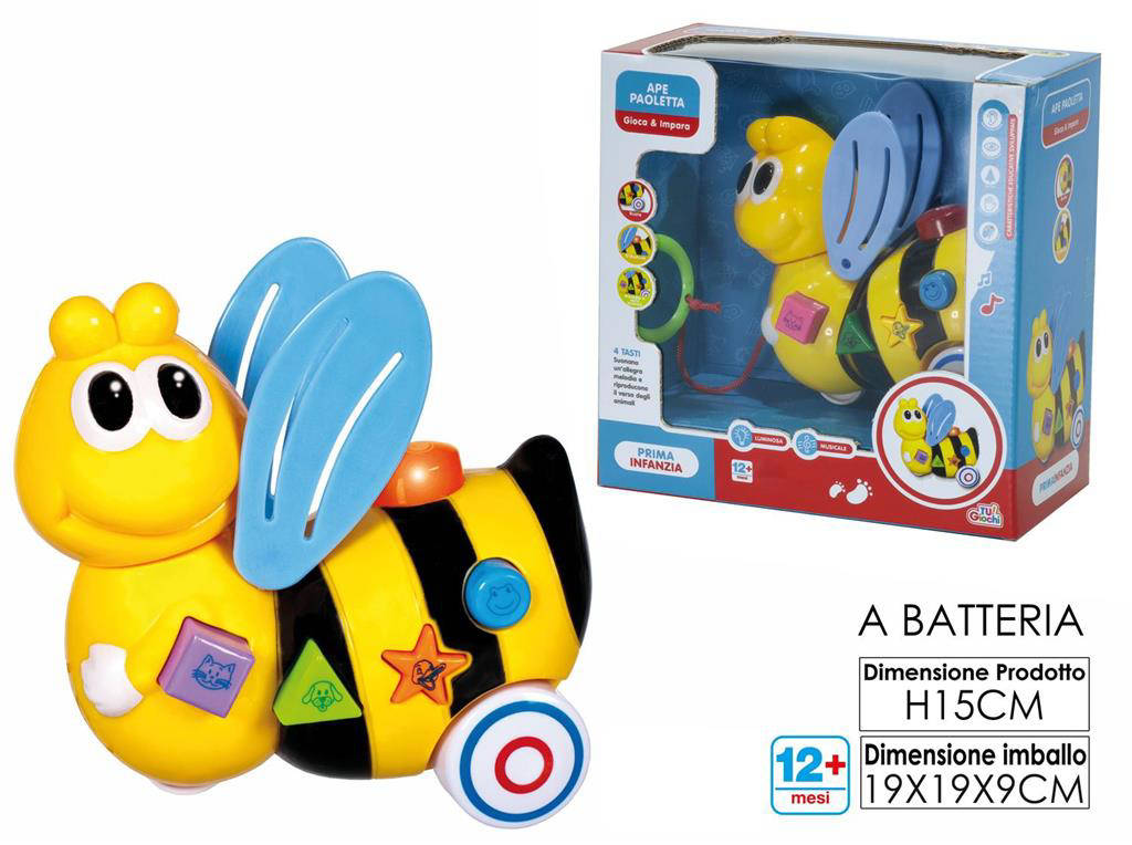 Scopri Ape Paoletta B/O Lu/Mus, il simpatico giocattolo elettronico che illumina e suona per accompagnare i più piccoli in ogni momento di gioco. Con un design colorato e forme arrotondate, stimola curiosità e coordinazione. Le luci soffuse e le melodie allegre creano un ambiente giocoso e rassicurante. Strutturata per resistere all'uso quotidiano, è ideale per l'intrattenimento educativo. Facile da usare, perfetta come idea regalo per bimbi curiosi.