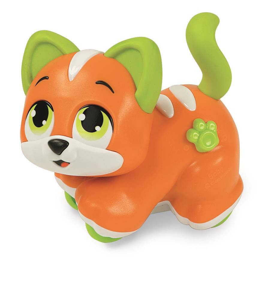 Un dolce gattino che ama essere coccolato dal bambino, riconosce le sue carezze ed interagisce interagisce con lui. Il gattino si muove grazie a un meccanismo a retrocarica. I due pulsanti sul capo e sul muso riconoscono le carezze del bambino: quando vengono sfiorati il cucciolo parla, canta, mugola e dà bacini. Con 2 allegre canzoncine per intrattenere il piccolo e catturarne l'attenzione mentre gioca. Le orecchie e la coda sono in plastica morbida per stimolare la percezione tattile del piccolo.