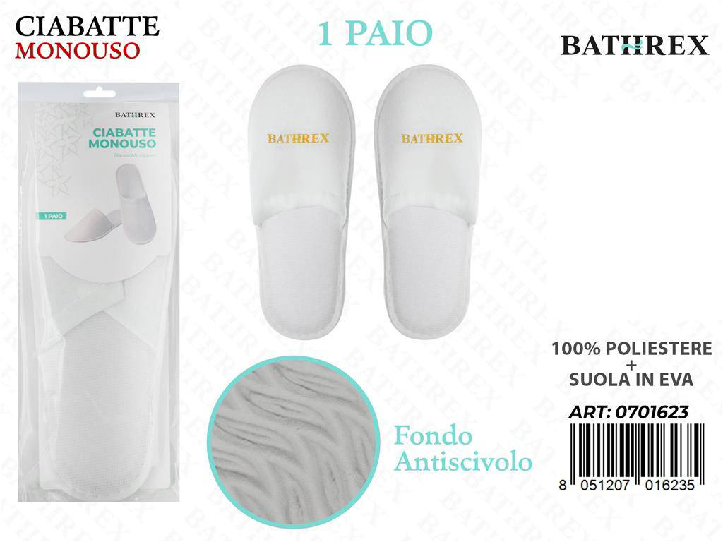Le ciabatte Bathrex sono pensate per elevare l'esperienza del cliente, offrendo comfort e sicurezza in ogni passo. La qualità dei materiali e la cura costruttiva le rendono un must per strutture professionali. Semplici da utilizzare, perfette come dotazione di benvenuto. Scegli Bathrex per un'accoglienza pulita, elegante e funzionale.