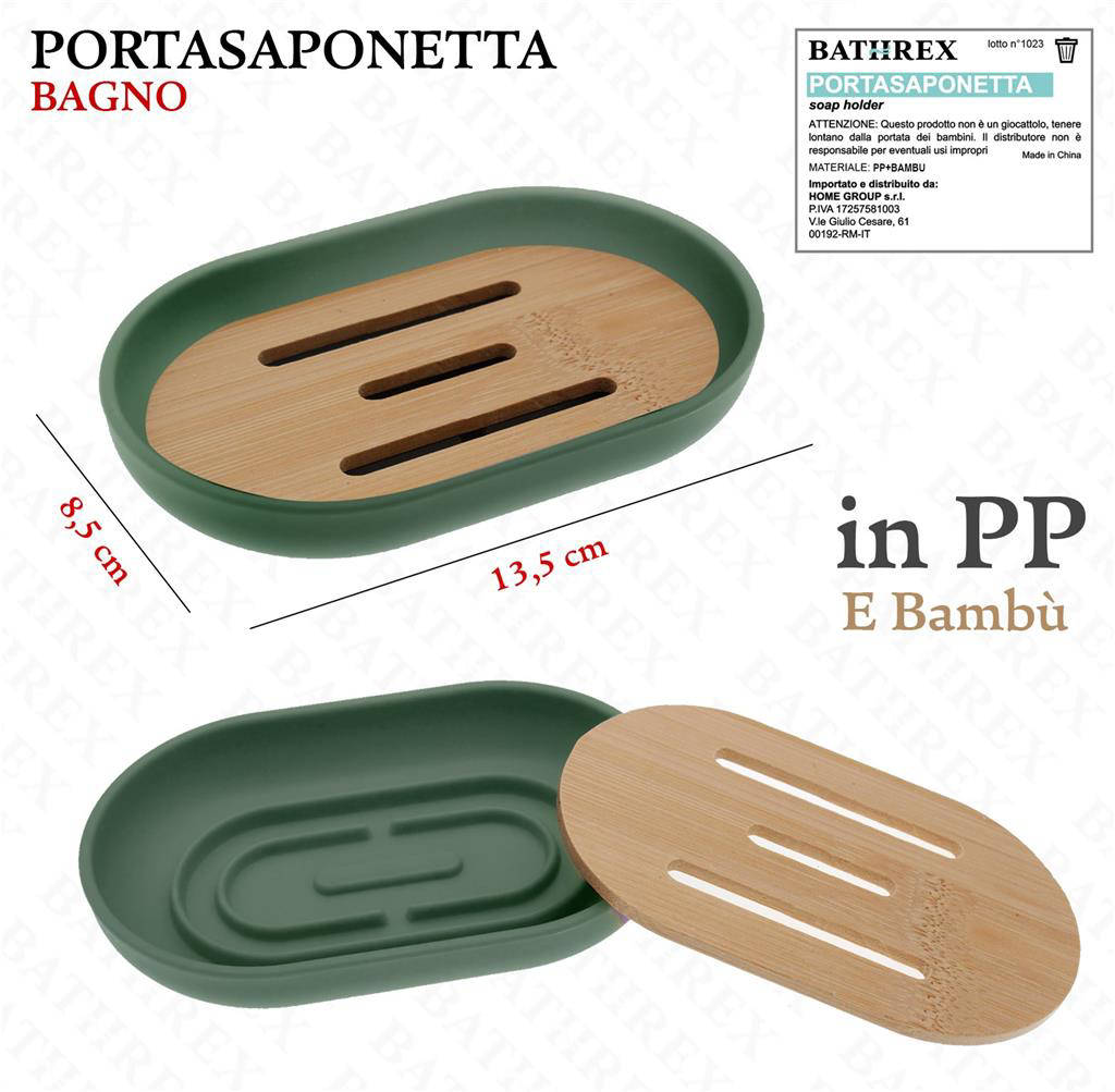Scopri Bathrex L.Bambu' Porta Saponetta Verde Ottanio, l'accessorio elegante che valorizza il tuo bagno con uno stile naturale e contemporaneo. Realizzato con finiture ispirate al bambù, unisce estetica e funzionalità in un formato compatto. Il colore verde ottanio dona un tocco di classe, perfetto per ambienti moderni e minimal. Ideale per mantenere il sapone asciutto e igienico, riduce gli sprechi e prolunga la durata della saponetta. Un dettaglio di design che fa la differenza nella tua routine quotidiana.