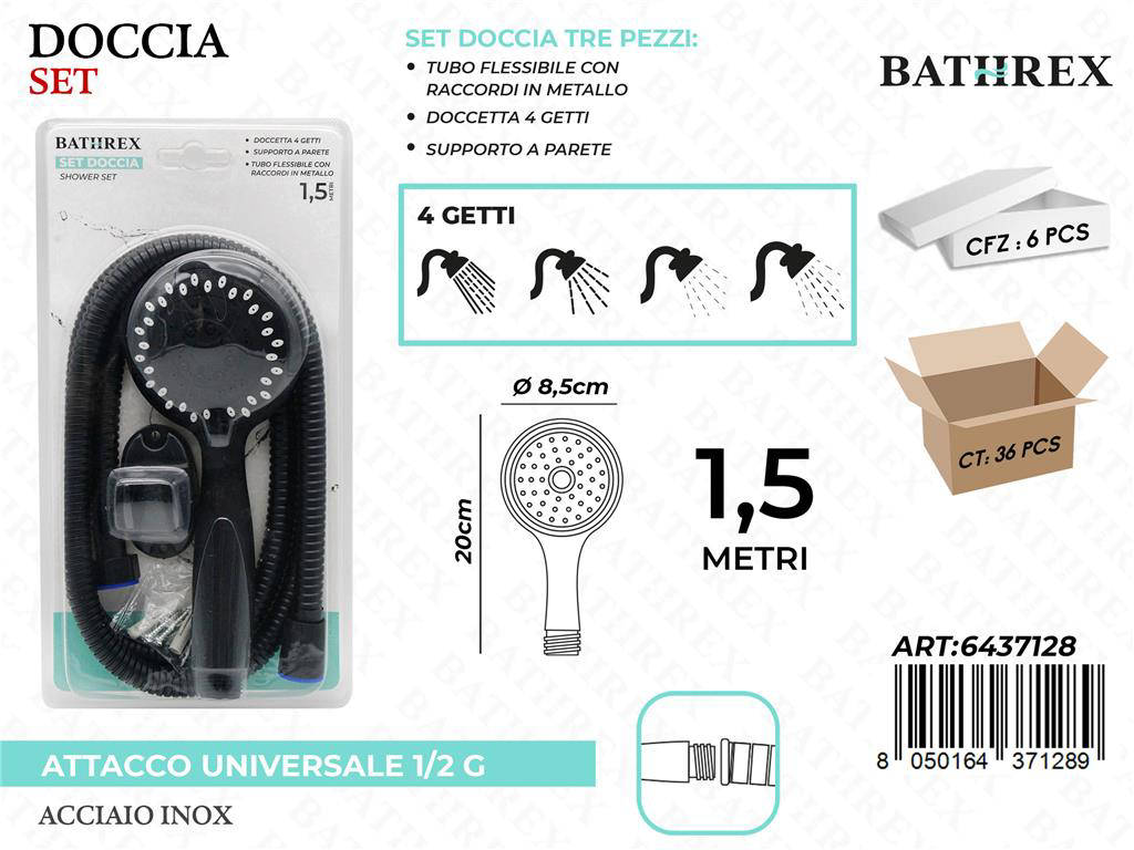 Scopri il Bathrex Set Doccetta 4 Getti con tubo da 1,5 m, progettato per trasformare ogni doccia in un momento di puro benessere. Il design moderno si integra perfettamente in qualsiasi bagno, offrendo efficienza e stile. La tecnologia a quattro modalità di getto consente di personalizzare il flusso d'acqua in base al tuo umore e alle tue esigenze quotidiane. Il tubo flessibile da 1,5 metri garantisce libertà di movimento e praticità nella pulizia. Materiali di qualità assicurano durata, resistenza al calcare e manutenzione minima.