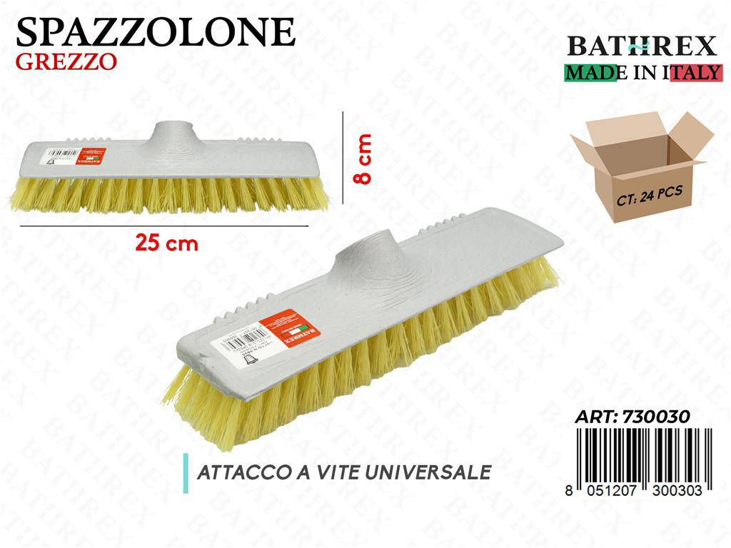 Bathrex Spazzolone Grezzo è lo strumento essenziale per una pulizia profonda di pavimenti industriali e domestici. La sua struttura robusta e il design funzionale garantiscono prestazioni affidabili e durature. Ideale per magazzini, garage, laboratori e aree esterne, offre un'azione scrubbante efficace anche sullo sporco ostinato. La base grezza permette massima versatilità di utilizzo con diversi manici e attacchi. Scegli una soluzione pratica e resistente per ottimizzare i tempi di pulizia.