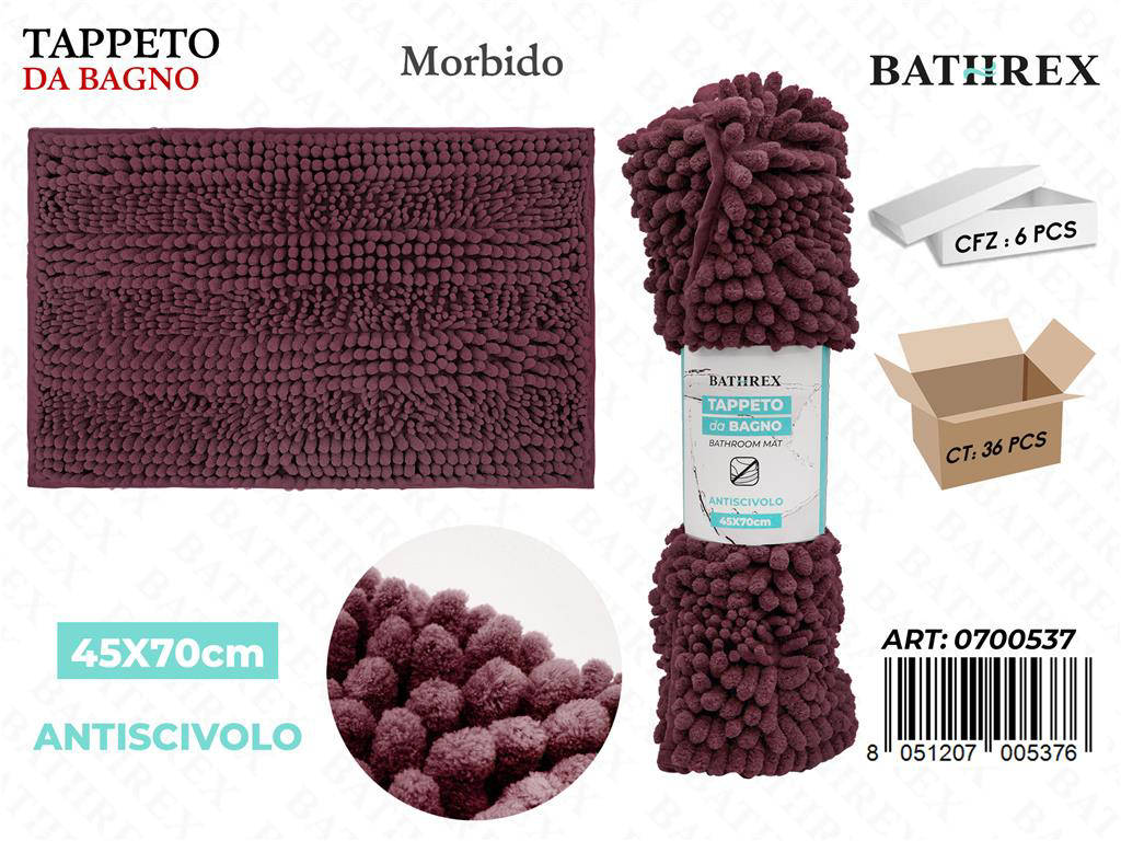 Scegli Bathrex per un bagno più accogliente e sicuro, senza rinunciare allo stile. Il mix di qualità, comfort e design rende questo tappeto un accessorio indispensabile. Il formato 45 70 cm si adatta perfettamente davanti a doccia, vasca o lavandino. Trasforma il tuo bagno con un tocco di colore e funzionalità duratura.