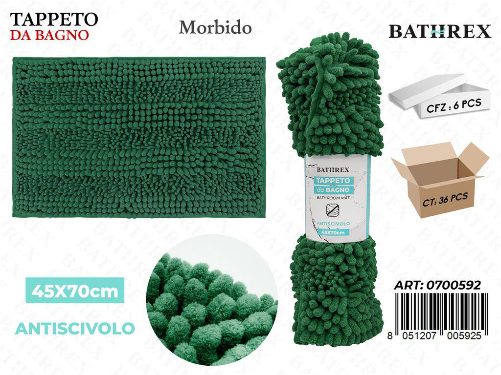 Scopri Bathrex Tappeto da Bagno 45 70 cm in elegante verde ottanio, pensato per unire stile e funzionalità nel tuo bagno. La sua texture soffice coccola i piedi ad ogni passo, trasformando la routine in un momento di comfort. Il colore verde ottanio, moderno e raffinato, valorizza ambienti chiari e scuri con un contrasto premium. Realizzato con materiali assorbenti e durevoli, mantiene il pavimento asciutto e sicuro. Facile da pulire e progettato per durare, è l alleato perfetto per un bagno ordinato e accogliente.