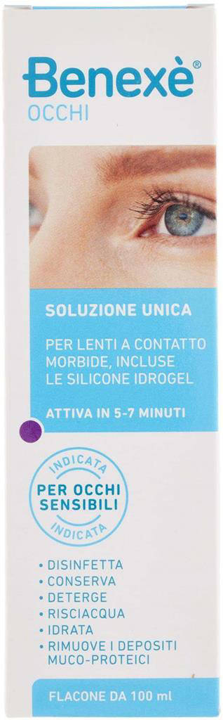 BENEXE' Soluzione Unica per Lenti 100 ml è il compagno ideale per la cura quotidiana delle lenti a contatto, studiato per garantire igiene, comfort e sicurezza. La sua formula avanzata pulisce in profondità e rimuove depositi proteici, mantenendo le lenti fresche più a lungo. Grazie all azione disinfettante, aiuta a prevenire irritazioni e arrossamenti. Il pratico formato da 100 ml è perfetto per l uso quotidiano e per i viaggi, conforme alle normative bagaglio a mano. Affidati a una soluzione completa per pulizia, risciacquo, disinfezione, conservazione e idratazione.