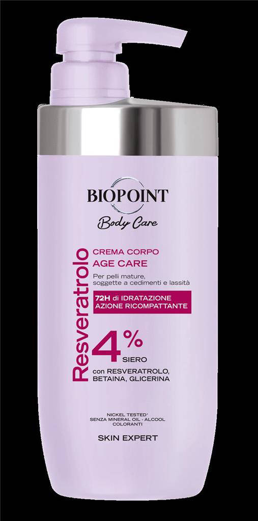 Scopri Biopoint Crema Corpo Resveratrolo 500 ml, il trattamento corpo quotidiano che unisce nutrimento profondo e azione antiossidante. La sua formula arricchita con resveratrolo aiuta a contrastare i segni dell invecchiamento cutaneo, migliorando compattezza e luminosità. La texture setosa si assorbe rapidamente senza ungere, lasciando la pelle morbida e vellutata. Ideale per pelli secche o spente che necessitano di comfort immediato. Dermatologicamente testata, è perfetta per un rituale di bellezza efficace e sensoriale.