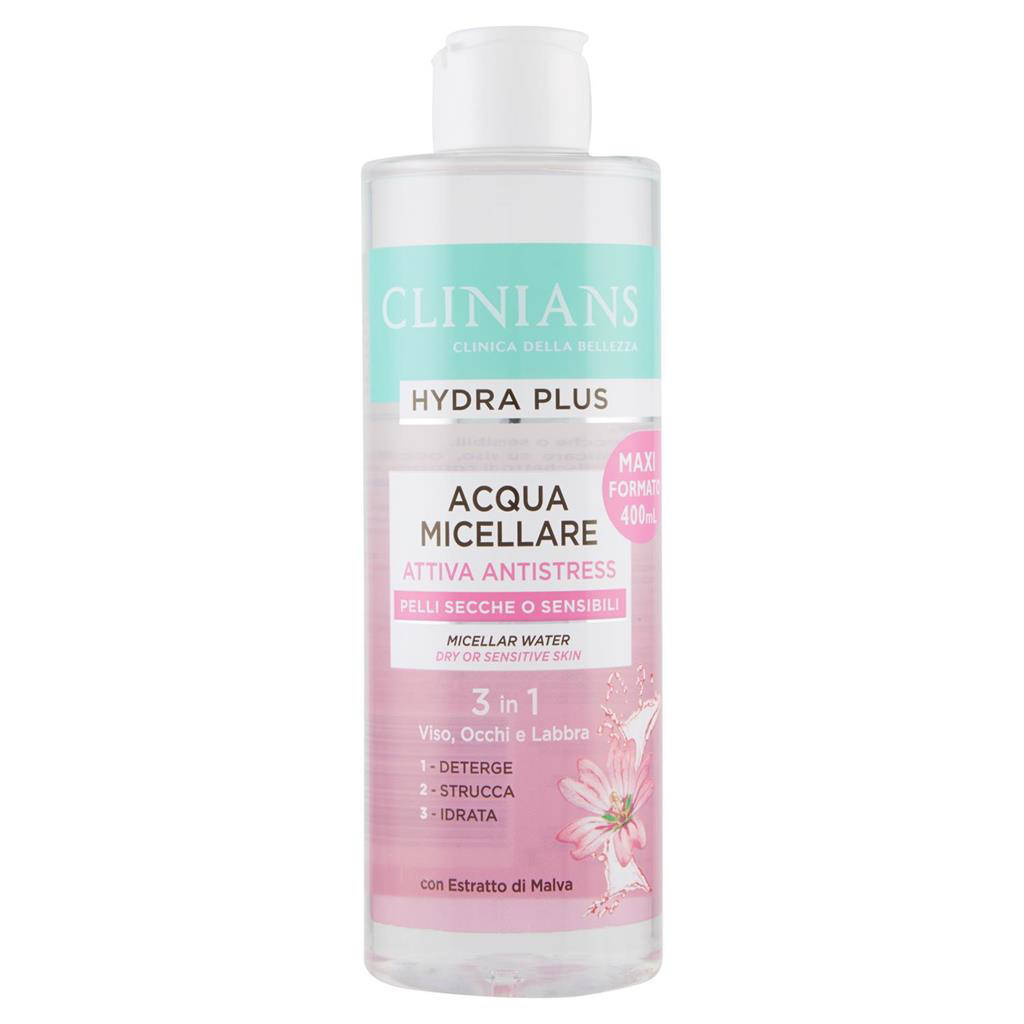 Scopri Clinians Acqua Micellare Hydra Plus Purificante 400 ml Antis, la soluzione rapida e delicata per struccare, detergere e purificare in un solo gesto. La sua formula bilanciata rimuove trucco, sebo e impurità senza sfregare, lasciando la pelle fresca e confortevole. Arricchita con attivi purificanti e idratanti, aiuta a minimizzare i pori e a mantenere l equilibrio cutaneo. Ideale per pelli miste e impure, ma abbastanza delicata da essere usata ogni giorno. Dermatologicamente e oftalmologicamente testata.