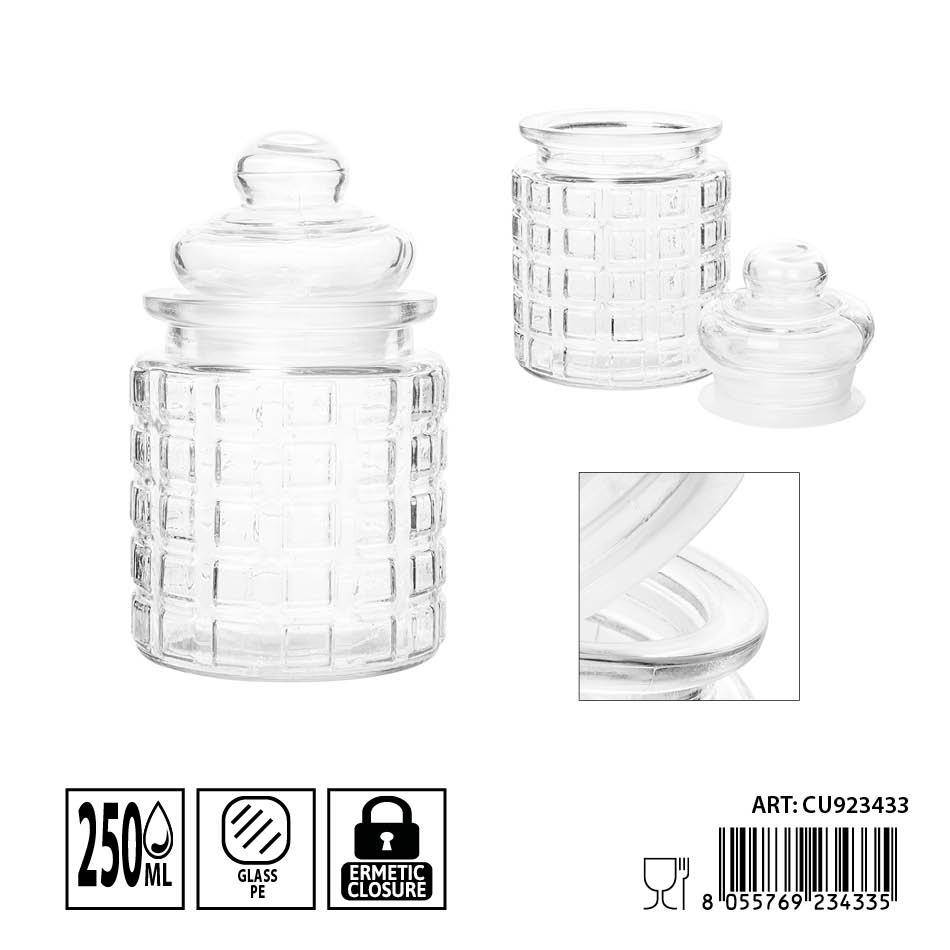 Scopri il Dc Casa Barattolo Ermetico in Vetro da 250 ml, la soluzione compatta e raffinata per conservare con stile. Il design trasparente ti permette di vedere subito il contenuto, mentre la chiusura ermetica mantiene intatta la freschezza. Perfetto per spezie, tisane, zucchero, sale, piccole conserve o cosmetici fai-da-te. La capacità da 250 ml è ideale per l'uso quotidiano in cucina, in dispensa o sul piano lavoro. Un accessorio funzionale che coniuga estetica minimale e praticità.