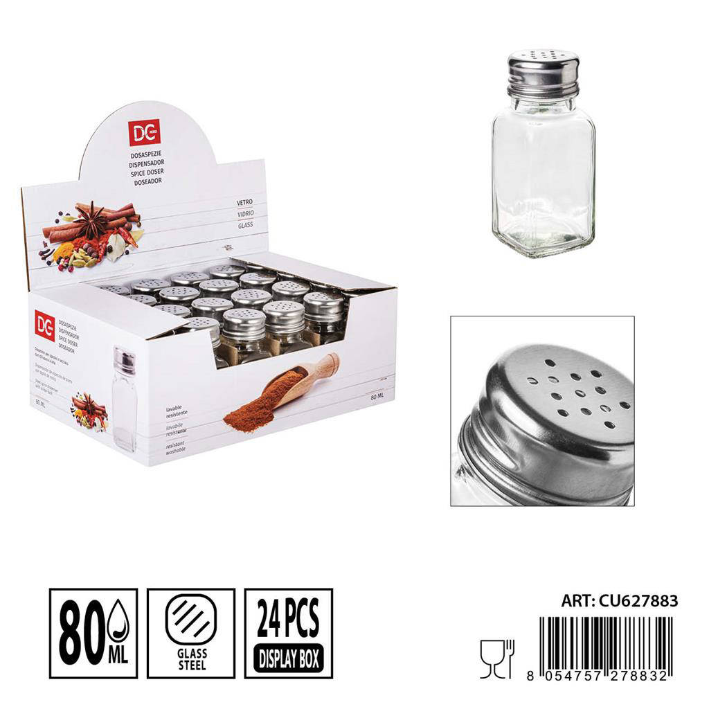 Scopri il Dc Casa Dosaspezie in vetro da 80 ml (4 x 9,5 cm), l'accessorio elegante e funzionale che porta ordine e precisione nella tua cucina. Progettato per dosare perfettamente spezie, sale, zucchero e mix aromatici, unisce design compatto e praticità quotidiana. Il corpo in vetro trasparente ti permette di vedere subito il contenuto e il livello rimasto. Ideale per chi ama cucinare con stile, mantenendo il piano di lavoro pulito e organizzato. Un must-have per home chef, food lover e per chi desidera un tocco professionale nelle proprie ricette.