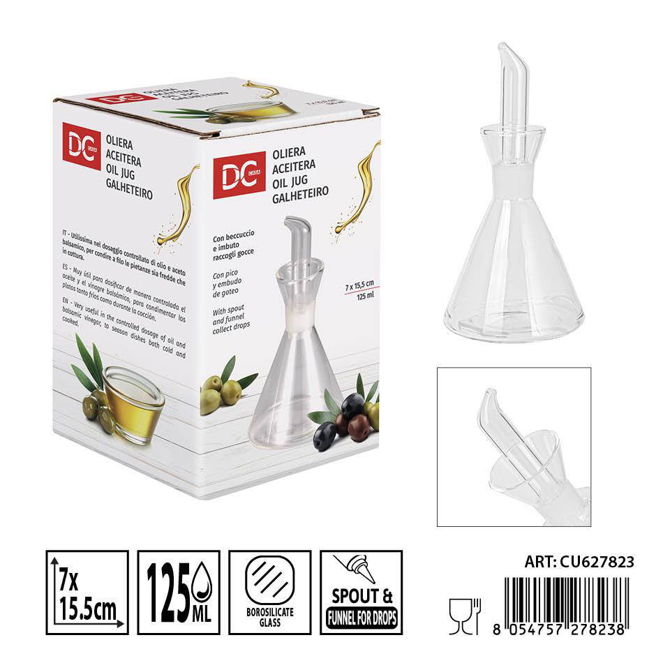 Scopri l eleganza essenziale dell Oliera in vetro DC Casa da 125 ml, dimensioni 7x15,5 cm. Un alleato compatto e raffinato per condire con precisione olio, aceto e dressing. Il design trasparente valorizza il contenuto e si integra in ogni stile di cucina. Facile da maneggiare, ideale per uso quotidiano e mise en place curate. Qualità affidabile per chi cerca praticità senza rinunciare allo stile.