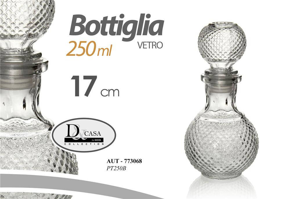 Scegli una bottiglia in vetro di qualità per un organizzazione più ordinata e sostenibile. D&Casa PT250B unisce praticità e stile, perfetta per uso domestico e professionale. Ottima per conservazione, servizio a tavola e creazioni fai-da-te. Aggiungila al tuo set cucina e valorizza ogni preparazione con un tocco di eleganza.