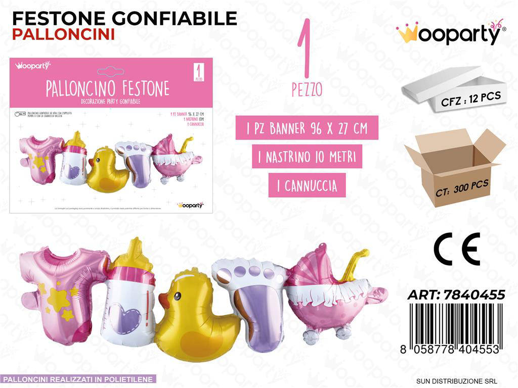 Festeggia l arrivo della tua bambina con il Festone Palloncino Baby Girl 96 27 cm, perfetto per baby shower, gender reveal e prime feste di compleanno. Dal design delicato e scenografico, dona subito un tocco professionale alla tua decorazione. Realizzato con materiali resistenti, è facile da montare e riutilizzabile con cura. Il formato generoso garantisce massima visibilità nelle foto e sui social. Un must-have per creare un atmosfera dolce e memorabile.