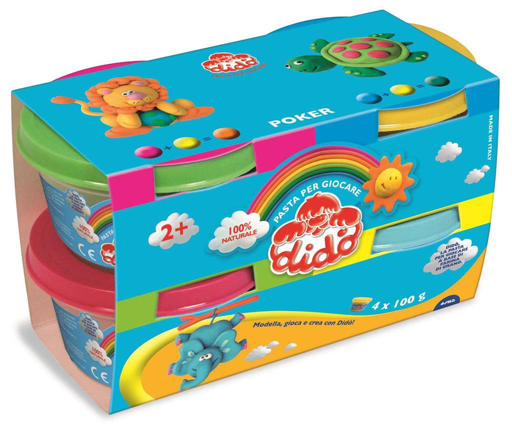 Fila - Didò - Barattolo 4 x 100 gr Verde, Giallo, Magenta, Ciano (F390700) è il set perfetto per stimolare creatività e manualità dei bambini in totale sicurezza. La pasta per modellare Didò, morbida e facilmente lavorabile, è a base di ingredienti naturali e non macchia. I quattro colori vivaci offrono infinite combinazioni per creare figure, lettere e mondi fantastici. Il pratico barattolo richiudibile mantiene il prodotto sempre fresco e pronto all uso. Ideale per casa, scuola e attività educative.
