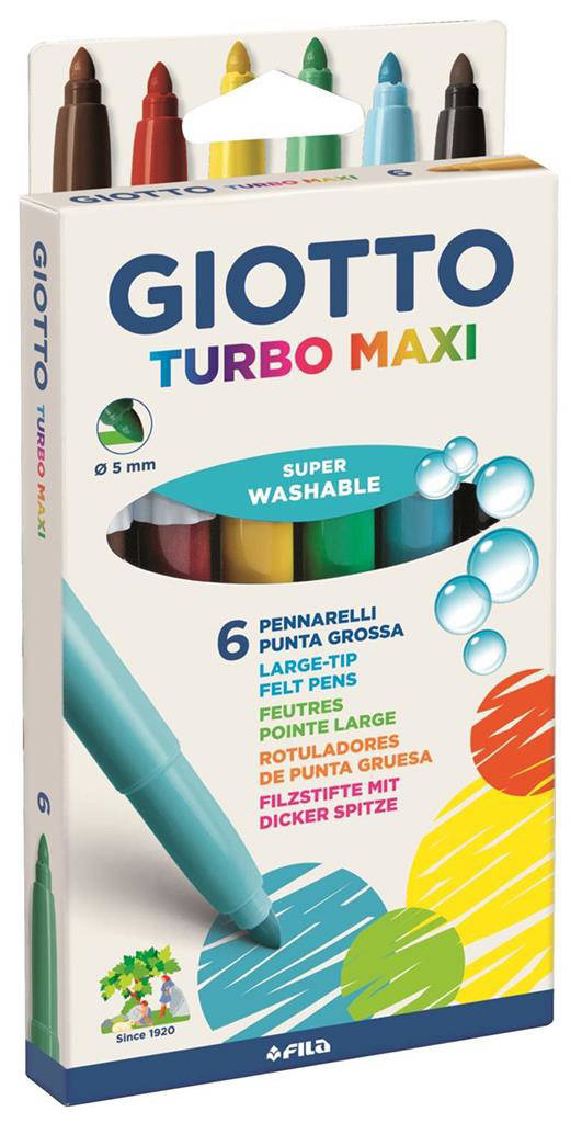 I pennarelli Fila Giotto Turbo Maxi F453000, confezione da 6, sono pensati per offrire colori intensi e una stesura omogenea su carta e cartoncino. La punta maxi conica consente sia tratti ampi sia dettagli precisi, ideale per scuola, hobby e laboratori creativi. L'inchiostro è a base d'acqua, super lavabile dalla pelle e dalla maggior parte dei tessuti, per un uso sereno anche con i più piccoli. Il fusto ergonomico facilita la presa e riduce l'affaticamento durante sessioni di disegno prolungate. Un prodotto affidabile, certificato e privo di sostanze nocive, per una creatività senza pensieri.