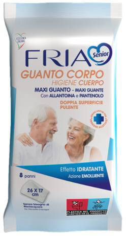 Scopri Fria Senior Guanto, confezione da 8 pezzi, Dispositivo Medico con Marcatura CE conforme alla Direttiva 93/42/CEE SS MM, pensato per l'igiene quotidiana di persone anziane o a ridotta mobilità. Ogni guanto è pre-imbibito e pronto all'uso, per una detersione rapida e confortevole senza risciacquo. La trama extra-morbida riduce l attrito sulla pelle fragile, aiutando a prevenire arrossamenti. Il formato monouso garantisce igiene e praticità in ogni contesto di cura. Ideale per uso domiciliare, clinico e assistenziale.
