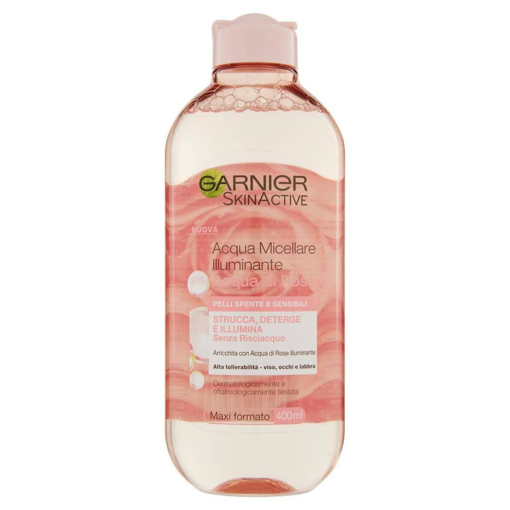Scopri Garnier SkinActive Struccante Illuminante Acqua Micellare con Acqua di Rose 400 ml, la soluzione 3-in-1 che deterge, strucca e illumina in un solo gesto. La sua formula con micelle ad alta efficacia cattura trucco e impurità senza strofinare. Arricchita con Acqua di Rose, dona una naturale luminosità e una piacevole sensazione di freschezza. Ideale per viso, occhi e labbra, anche per pelli sensibili. La tua pelle appare pulita, radiosa e confortevole fin dal primo utilizzo.