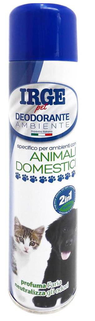 Scopri Irge Deo Ambiente Spray per Animali Domestici al profumo di Talco, formato 300 ml, studiato per neutralizzare gli odori tipici di cani e gatti. La sua formula agisce rapidamente, lasciando nell aria una sensazione di pulito e freschezza prolungata. Ideale per ambienti interni come soggiorni, cucce, lettiere e zone di passaggio. Sicuro se usato correttamente negli spazi condivisi con i tuoi amici a quattro zampe. Un alleato quotidiano per una casa accogliente e profumata.
