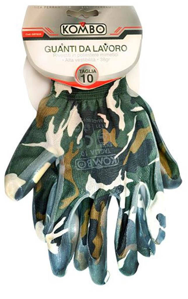 Kombo Guanti Da Giardino Super Resistenti, In Poliestere Rivestiti In Nitrile Fantasia Mimetica, Tg.10, 38Gr Ce3121 En388 En420
