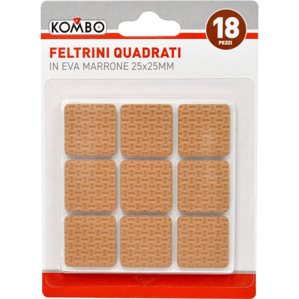 Proteggi i tuoi pavimenti e arredi con il Kombo Set 18 Pz Feltrini Quadrati in EVA Marrone 25x25 mm, la soluzione pratica e discreta per evitare graffi e segni. Ideali per sedie, tavoli, mobili e oggetti d'arredo, questi feltrini garantiscono uno scorrimento fluido e silenzioso. Il colore marrone si integra perfettamente con legni scuri e superfici neutre, mantenendo un aspetto elegante. La dimensione compatta 25x25 mm li rende versatili e facili da applicare su molteplici basi. Scegli un set completo, affidabile e a lunga durata per la manutenzione quotidiana della tua casa.