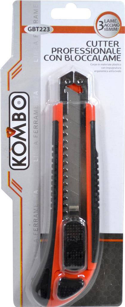 Kombo Taglierino Professionale con Bloccalama è lo strumento ideale per tagli precisi e sicuri in ambito professionale e domestico. Progettato per garantire efficienza, comfort e controllo, offre prestazioni affidabili su cartone, vinile, moquette e materiali plastici. La struttura robusta e l ergonomia avanzata assicurano un utilizzo prolungato senza affaticamento. Grazie al bloccalama di sicurezza e all impugnatura antiscivolo, lavori con stabilità e precisione. Incluso nella confezione: 3 lame di ricambio per lavorare senza interruzioni.