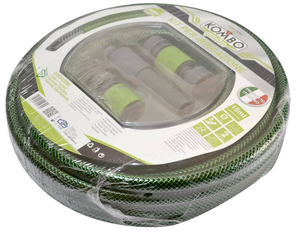 Kombo Tubo Irrigazione 1/2'' 15Mt. Attacco A Rubinetto, Raccordo Rapido, Raccordo Rapido Acquastop, Lancia A Getto Regolabile.