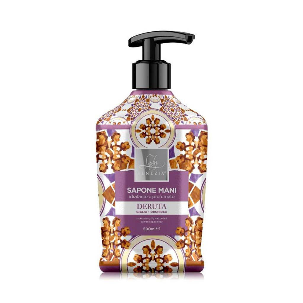 Scopri l'eleganza quotidiana con Lady Venezia Sapone Mani Ceramiche Deruta 500 ml, ispirato alle pregiate ceramiche umbre. La sua formula deterge delicatamente lasciando le mani morbide e profumate. Un profumo raffinato, pulito e persistente valorizza ogni lavaggio. Il flacone da 500 ml garantisce una lunga durata, ideale per famiglia e ospitalità. Design ricercato che arreda il bagno e aggiunge un tocco di classe al tuo lavello.