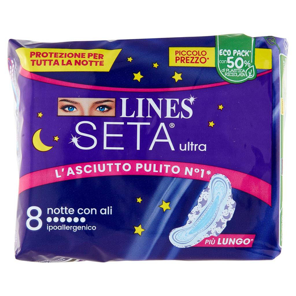 Scegli Lines Seta Ultra Notte DWCT X8 per un riposo sereno e una protezione affidabile fino al mattino. Le caratteristiche chiave come protezione notte ultra, Dry&Comfort e barriere alte ti offrono sicurezza in ogni movimento. Comfort, delicatezza e assorbenza si uniscono in un unico prodotto. Porta a casa la qualità Lines e vivi la notte con totale tranquillità.