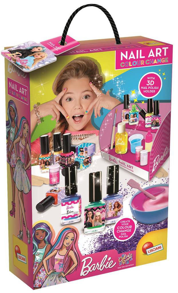 Divertiti a creare smalti sempre più colorati con la nuova fashion Nail Art di Barbie. Scopri in quanti modi potrai personalizzare il tuo smalto che cambierà colore ogni volta che entrarà a contatto con acqua fredda o calda. Con il sistema color change po
