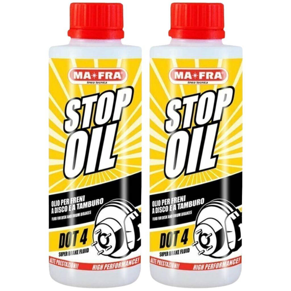 MAFRA Stop Oil DOT 4 250 ml è il fluido freni ad alte prestazioni progettato per garantire risposta pronta e sicurezza costante su strada. Formulato secondo gli standard DOT 4, offre un punto di ebollizione elevato e una stabilità termica superiore. Ideale per auto moderne, moto e veicoli con ABS/ESP, riduce il rischio di vapour lock e mantiene una frenata precisa. La confezione da 250 ml è perfetta per rabbocchi e manutenzioni programmate. Affidabilità, protezione e performance in un formato pratico.
