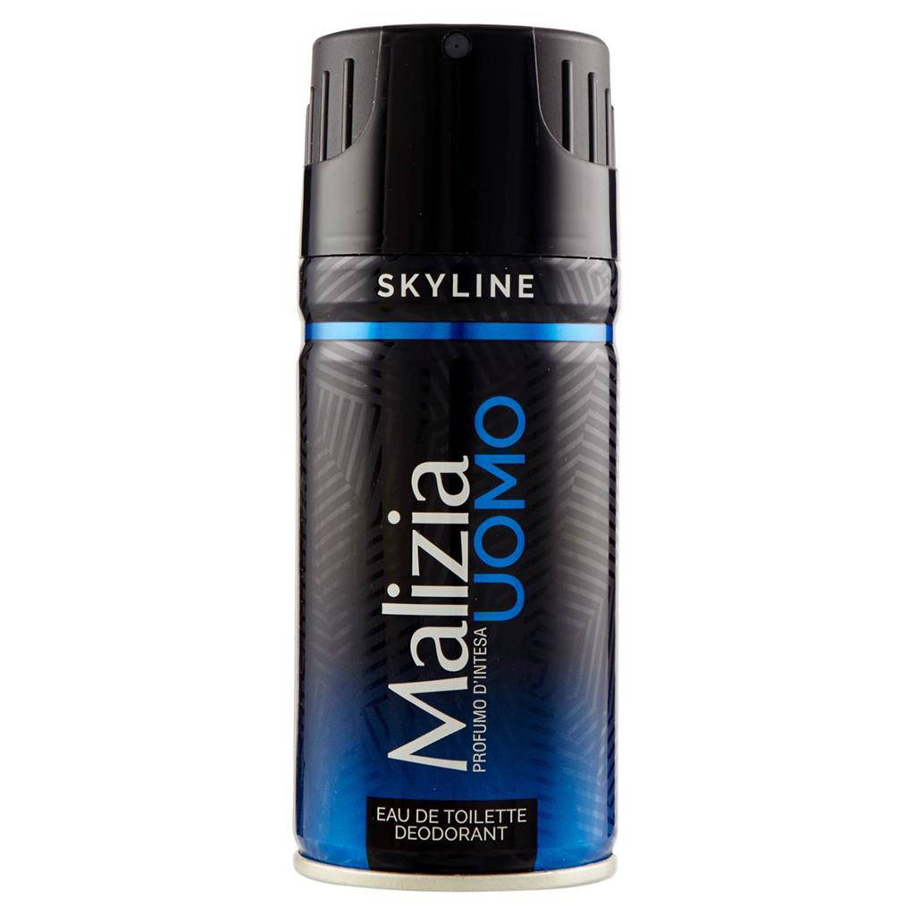 Scopri Malizia Uomo Skyline Eau de Toilette Deodorant 150 mL, il deodorante spray che unisce freschezza duratura e carattere urbano. Una fragranza maschile moderna, ispirata all'energia della città, pensata per accompagnarti tutto il giorno. La sua formula deodorante con effetto long-lasting aiuta a tenere sotto controllo gli odori senza irritare la pelle. Un gesto quotidiano che amplifica il tuo stile con un profumo deciso ma equilibrato. Ideale per lavoro, palestra e serate.