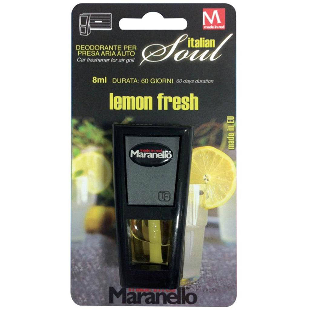 Scopri Maranello Deod. Italian Soul per presa aria Lemon Fresh, il deodorante auto che dona alla tua vettura un profumo agrumato puro e persistente. La sua formula premium diffonde una fragranza fresca e luminosa ispirata al Mediterraneo. Facile da applicare alla griglia di aerazione, rilascia note di limone brillante e sfumature erbacee. Perfetto per chi desidera un ambiente pulito, vivace e accogliente durante ogni viaggio. Qualità Made in Italy per un esperienza olfattiva raffinata.
