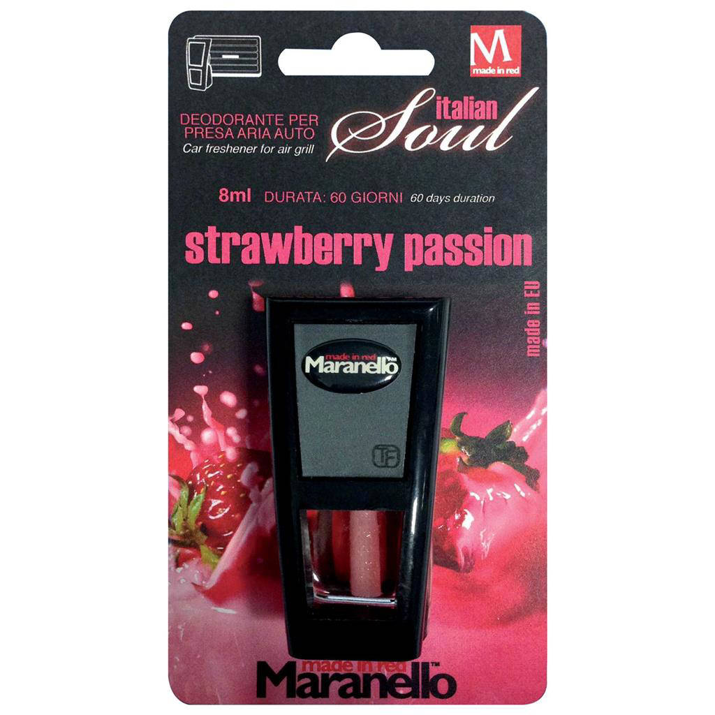 Scopri Maranello Deod.Italian Soul per presa aria Strawberry Passion, il deodorante auto che unisce design italiano e profumazione intensa. La sua fragranza fragola-gourmand dona energia e piacevoli note fruttate ad ogni viaggio. Studiato per agganciarsi facilmente alla presa d aria, diffonde un aroma costante e bilanciato. Ideale per chi desidera un abitacolo sempre fresco, senza odori sgradevoli. Qualità, durata e stile: tutto in un formato compatto.
