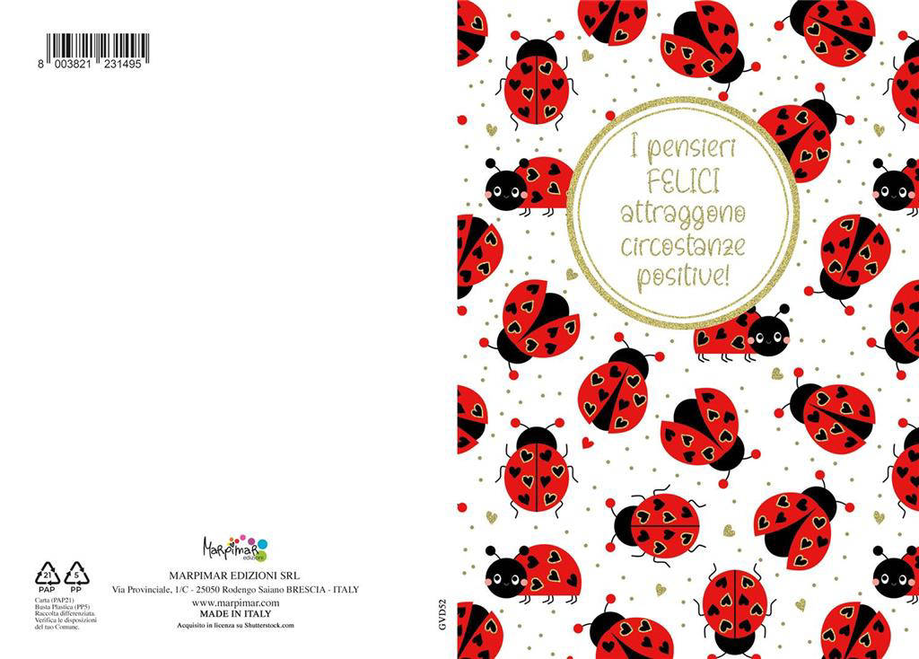 - Design con coccinelle portafortuna: grafica vivace e armoniosa che trasmette allegria e un messaggio positivo in ogni occasione.