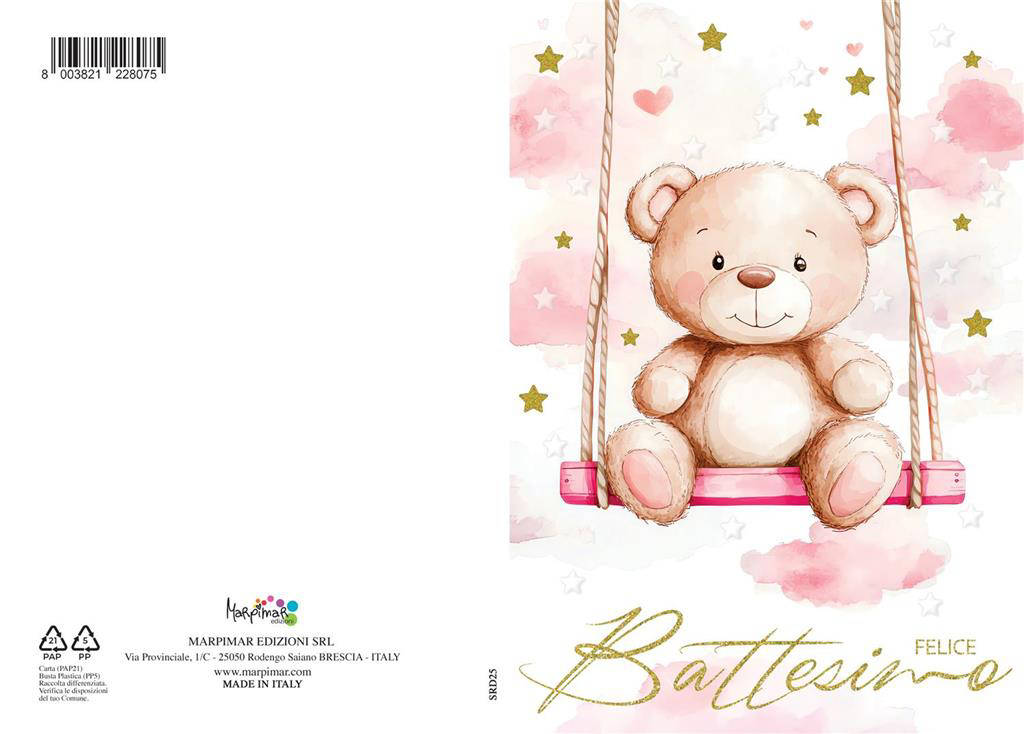 Scegli Marpimar - Orsetto Rosa SRD25 per donare un tocco di magia al battesimo della tua bambina. Un articolo pensato per valorizzare ogni dettaglio, dalle bomboniere all'allestimento della sala. Grazie al suo stile delicato, si integra perfettamente con qualsiasi palette romantica. Rendi il tuo evento unico, elegante e indimenticabile.