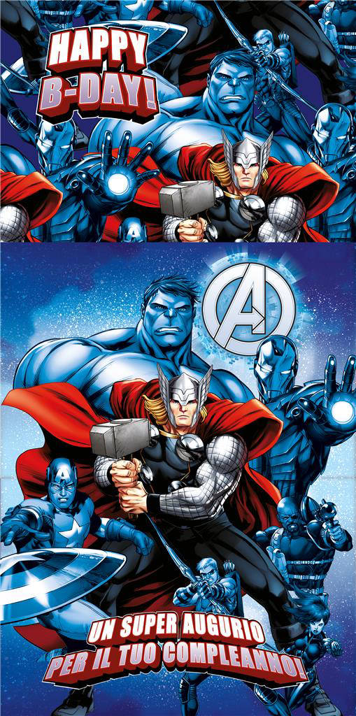 Perfetto per compleanni, feste a tema, inviti e congratulazioni. - Licenza ispirata all'universo Avengers: grafica riconoscibile per fan di Iron Man, Captain America, Thor e Hulk.