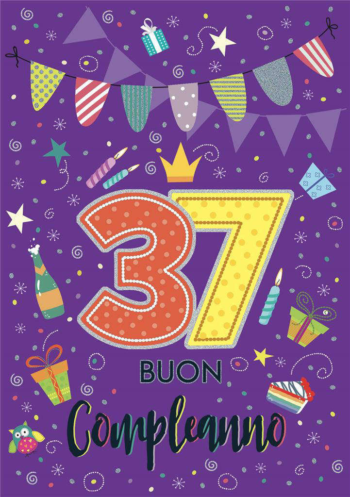 - Design dedicato ai 37 anni: grafica contemporanea con dettagli festivi, perfetta per un augurio di impatto.