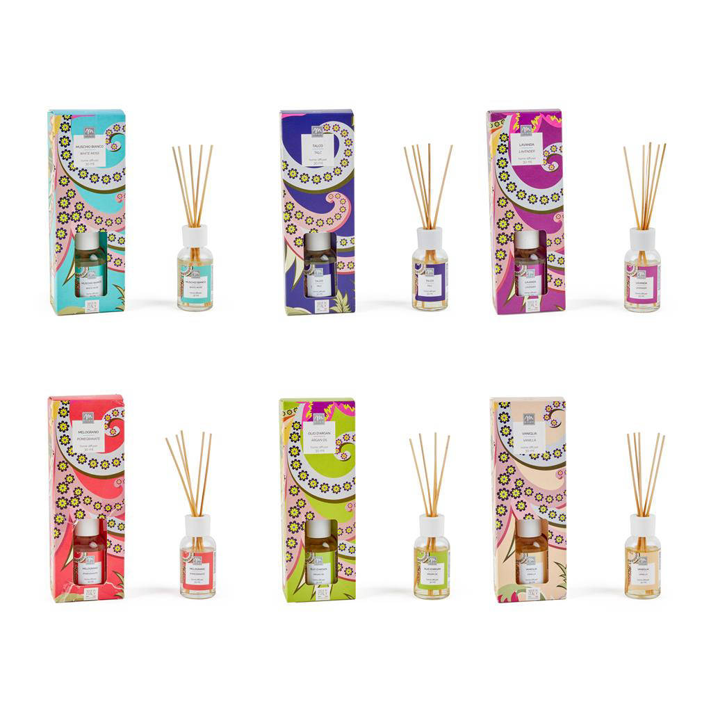 - Bastoncini in rattan: diffusione naturale e uniforme, regolabile aumentando o diminuendo il numero di bastoncini.