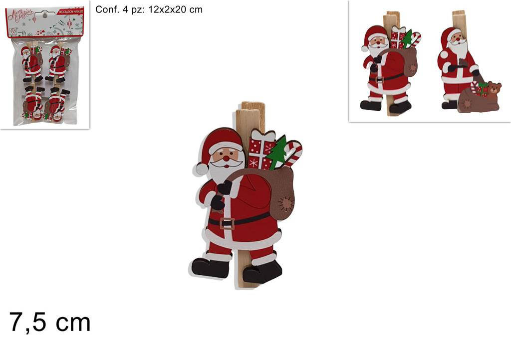 Porta la magia delle feste in ogni angolo della tua casa con le Mollette Natalizie Babbo Natale Set 4Pz 2 Ass. Un dettaglio decorativo grazioso e versatile, perfetto per addobbare pacchi regalo, albero di Natale, segnaposto e calendari dell Avvento. Ogni confezione include 4 mollette con simpatici Babbi Natale in due assortimenti, per creare composizioni sempre diverse. facili da usare e riutilizzabili, aggiungono un tocco di colore e allegria. Ideali per decorazioni fai-da-te, home decor e allestimenti di vetrine.