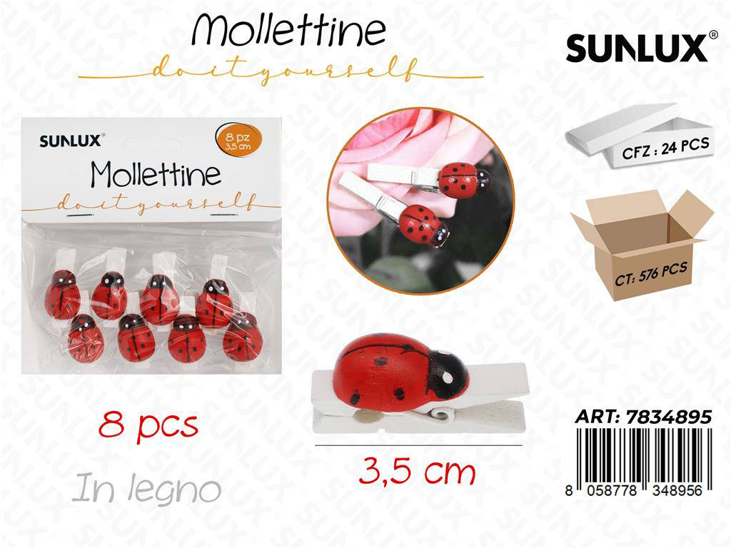 Porta un tocco di natura e allegria alle tue creazioni con le Mollettine in Legno Coccinella. Realizzate in legno di qualità, sono perfette per decorazioni fai-da-te, scrapbooking, confezioni regalo e allestimenti per feste. Ogni mollettina misura 3,5 cm, ideale per essere maneggiata con facilità e garantire una presa stabile. Il design con coccinella dipinta dona un accento vivace e primaverile a ogni progetto. Confezione da 24 pezzi, per avere sempre a disposizione il giusto numero di clip per i tuoi lavori creativi.