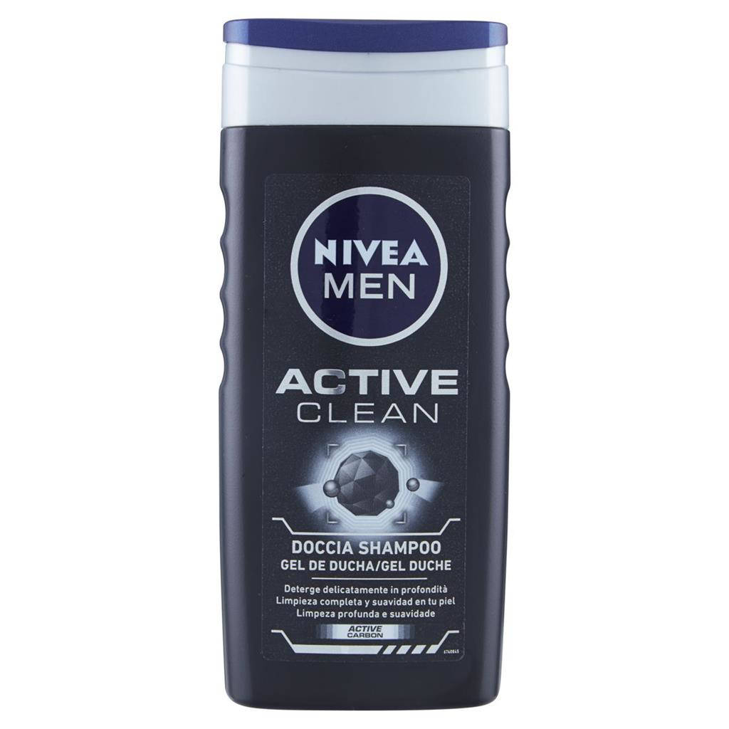 Scopri NIVEA MEN Docciaschiuma Gel & Shampoo Active Clean 250 ml, pensato per l uomo che cerca freschezza profonda e praticità quotidiana. La sua formula efficace deterge corpo, viso e capelli in un solo gesto, lasciando una sensazione di pulito energizzante. Arricchito con carbone attivo, aiuta a catturare sporco e impurità senza seccare la pelle. La texture in gel si trasforma in una schiuma ricca e facile da risciacquare. Il profumo maschile dona lunga durata, perfetto dopo sport o in viaggio.