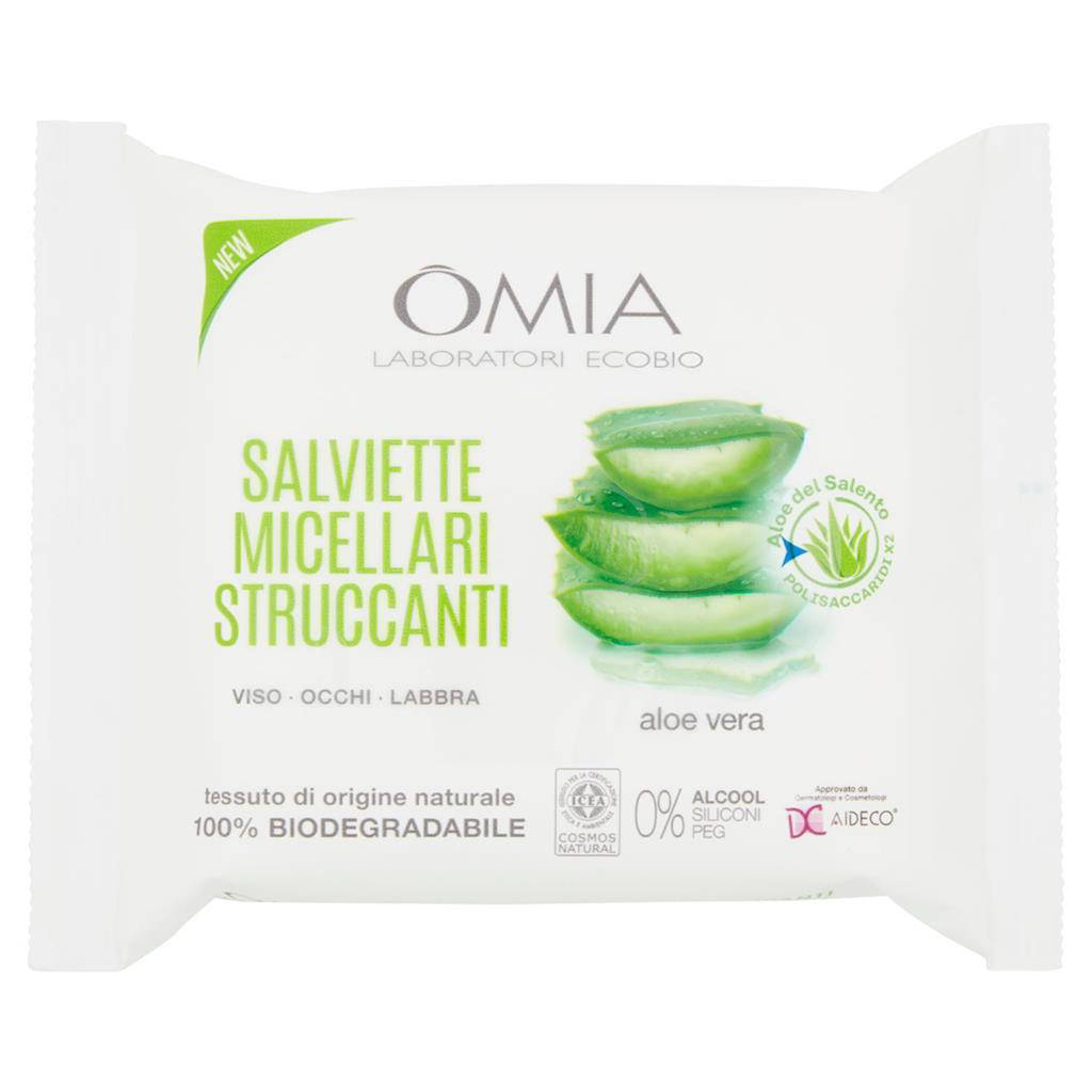 Semplifica la tua beauty routine con un gesto rapido e sicuro, anche fuori casa. Le salviette micellari OMIA ECOBIO all Aloe Vera rispettano la pelle e l ambiente, unendo performance e delicatezza. Ideali per tutti i tipi di pelle, in particolare quelle secche o reattive. Scegli una detersione smart, fresca e confortevole, ogni giorno.