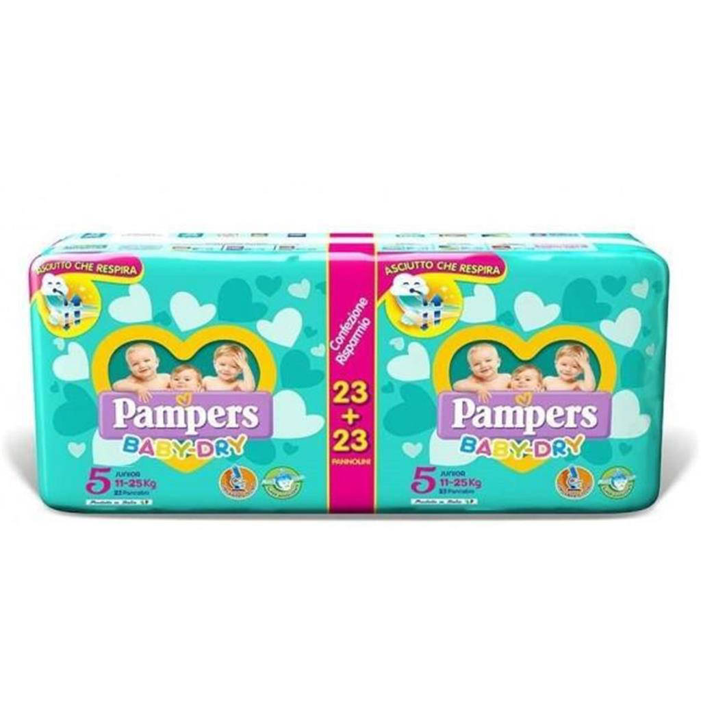 Pampers Baby Dry Value Pack Junior Taglia 5 (11-25 Kg), 44 Pannolini