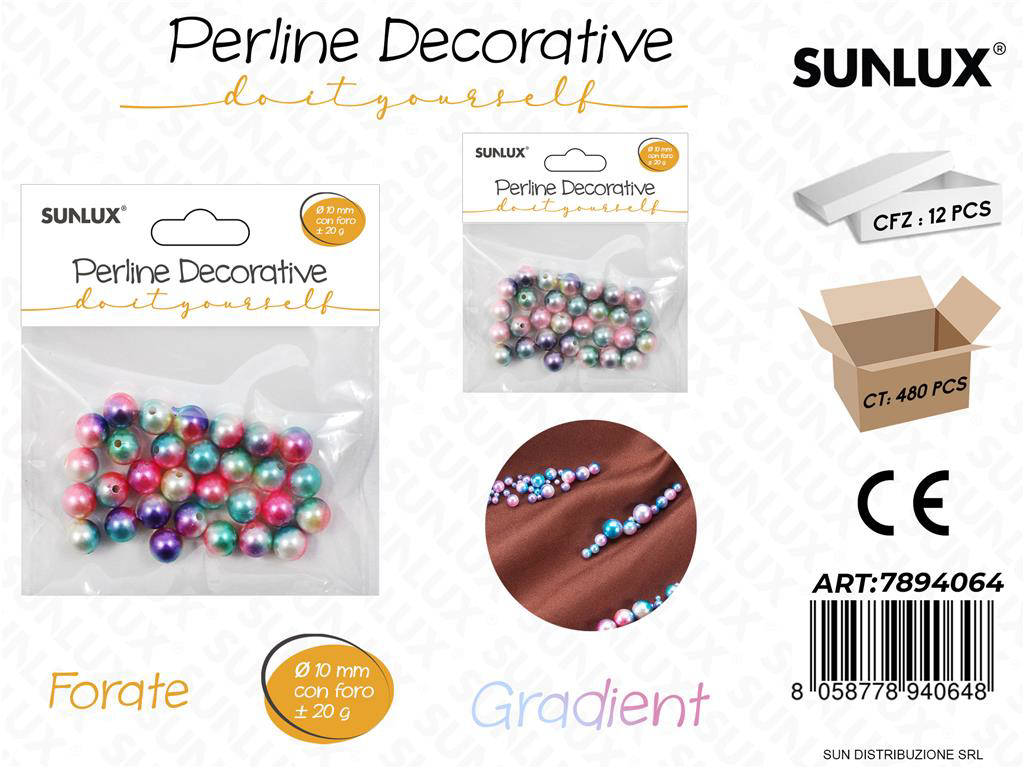 Scopri le Perline Dec. Forate Gradient D.10mm, confezione da 20 g (circa 12 pezzi), ideali per creare gioielli unici e progetti di artigianato raffinati. Il finish a sfumatura gradiente dona profondità e luminosità ad ogni creazione. Con un diametro di 10 mm, offrono presenza visiva e facilità di montaggio. Il foro passante regolare assicura scorrimento fluido su fili e cordini. Perfette per bracciali, collane, orecchini e decorazioni DIY.