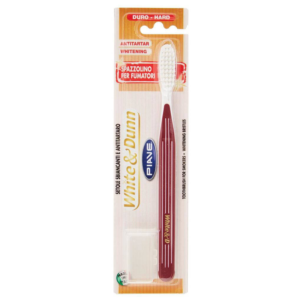 Scegli Piave Spazzolino White&-Dunn Duro per una pulizia energica e affidabile, senza compromessi. La combinazione di setole rigide e design professionale supporta una routine orale efficace. Consigliato per adulti con esigenze di rimozione placca potenziata. Per protezione gengivale, regola la pressione e abbinalo a un dentifricio adatto.