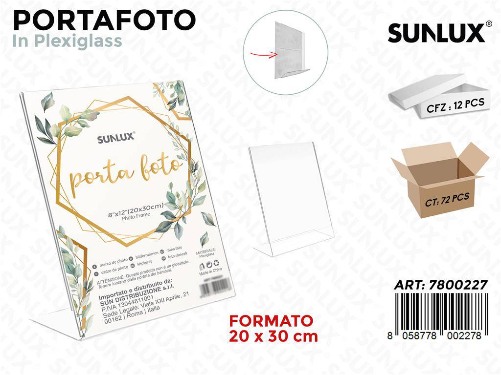 Elegante portafoto in plexiglass formato 20 30 cm, ideale per valorizzare foto, certificati o poster. Il materiale acrilico di alta qualità garantisce trasparenza cristallina e lunga durata nel tempo. Design moderno e minimale che si integra perfettamente in casa, ufficio e ambienti retail. Facile da pulire e resistente ai graffi per una presentazione sempre impeccabile. Confezione professionale da 12 pezzi, perfetta per allestimenti e forniture.