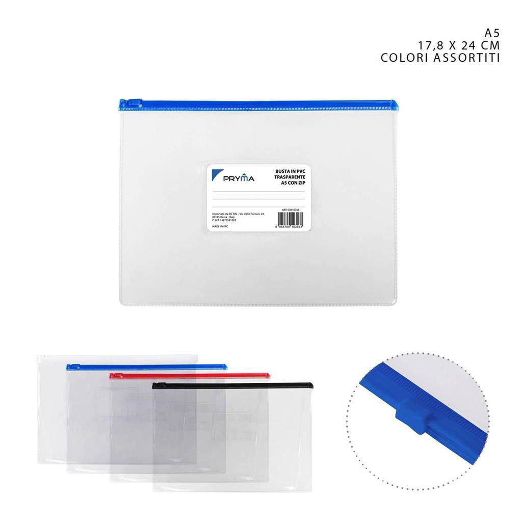 Scopri la Pryma Busta Trasparente in PVC con zip, formato A5 (17,8 x 24 cm), pensata per organizzare e proteggere i tuoi documenti con praticità quotidiana. Realizzata in PVC trasparente di alta qualità, consente di identificare il contenuto a colpo d occhio. La chiusura a zip garantisce sicurezza e impedisce la fuoriuscita di fogli, penne e piccoli accessori. Ideale per scuola, ufficio e viaggio, si adatta perfettamente a quaderni A5, brochure e fogli piegati. Codice prodotto 0209046 per un acquisto preciso e veloce.