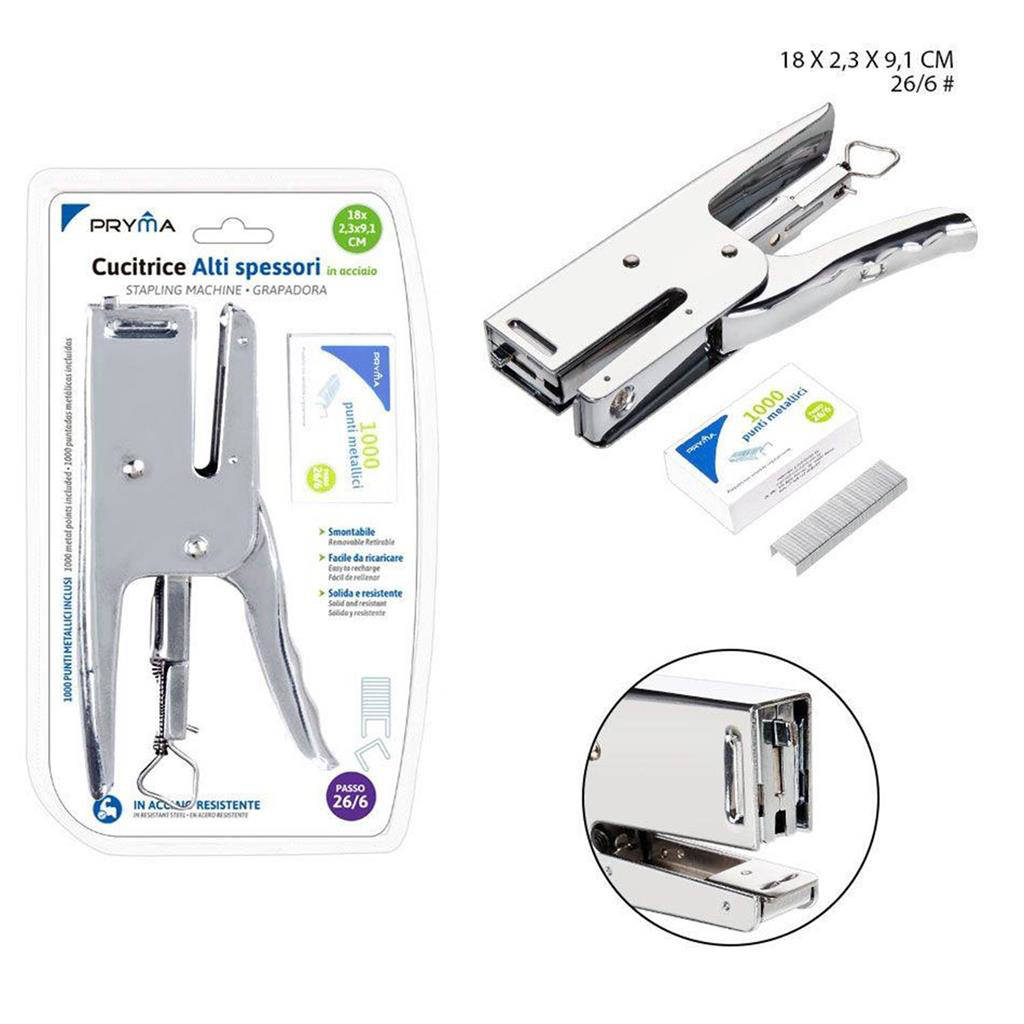 Scegli la Pryma Cucitrice A/Spes.18x2.3x9.1 per un esperienza di rilegatura rapida e senza intoppi. La dotazione di 1000 punti P26/6 ti garantisce continuità operativa fin da subito. Ideale per uffici, studi professionali e home office. Qualità affidabile per documenti sempre perfetti.
